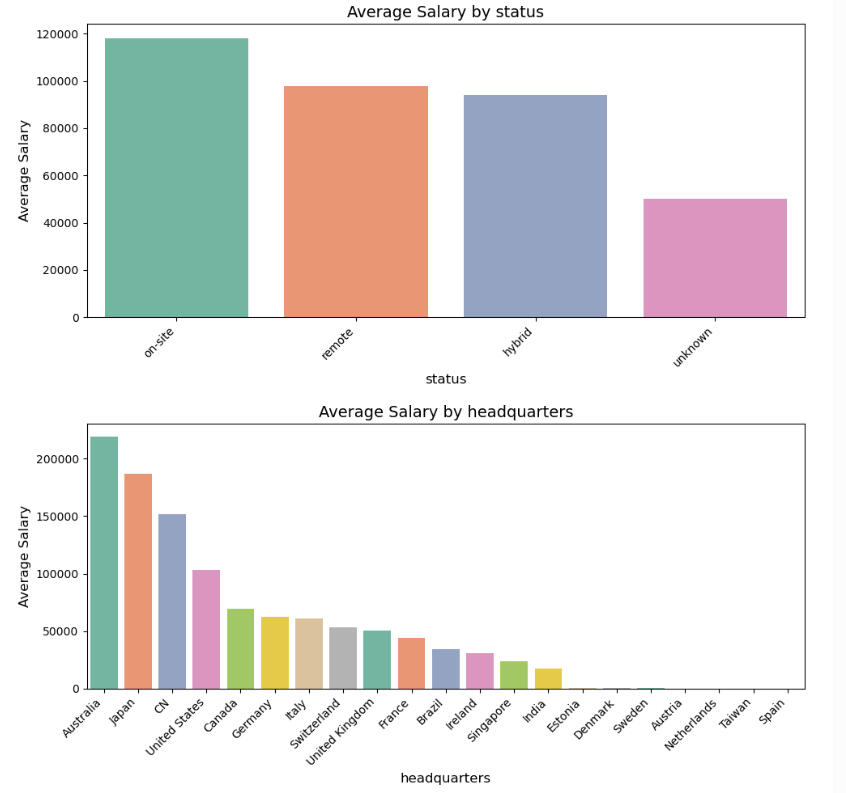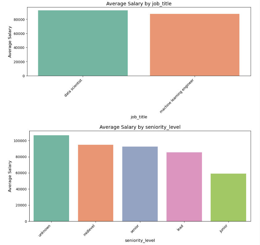 Purpose:As a data engineer, I was immediately interested when I encountered this recent dataset containing data gathered from job postings for Data Scientists, Machine Learning Engineers, and others.Upon closer inspection, there seemed to be enough data to ask and possibly answer the questions:1. Which job titles carried the highest salary offers?2. Which factors (location, skills required, company size, etc.) had the most effect on salary sizes?