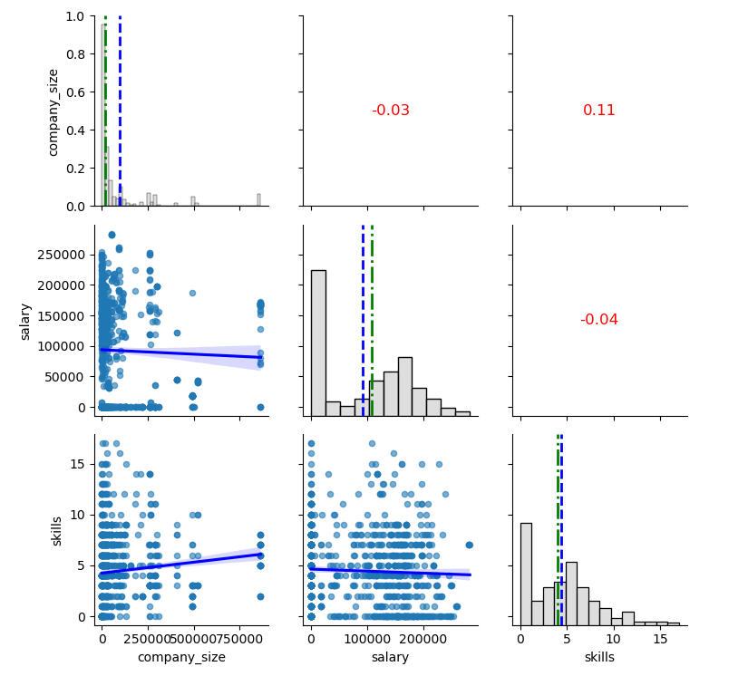 - The correlations are all negligible. It is hard not to comment, though, on the (very) slight negative correlation of salary over company size.